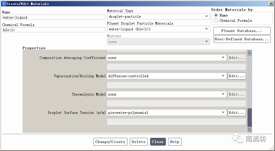 (2)设置粒子的Droplet Surface Tension为piecewise-polynomial。