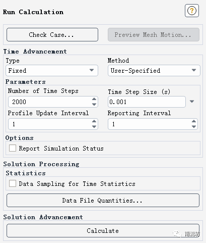 在Time Step Size填入0.001,Number of Iterations中输入2000,单击Calculate开始计算。