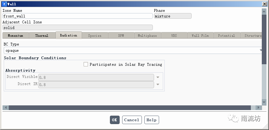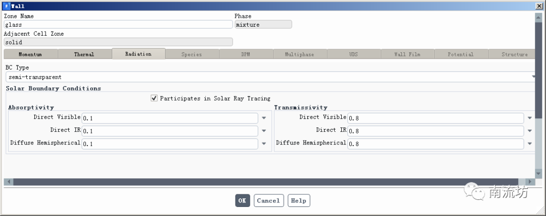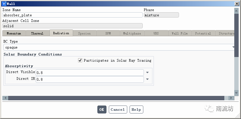 Radiation Models对话框,勾选Rosseland,Solar Load Model选择Solar Ray Tracing。