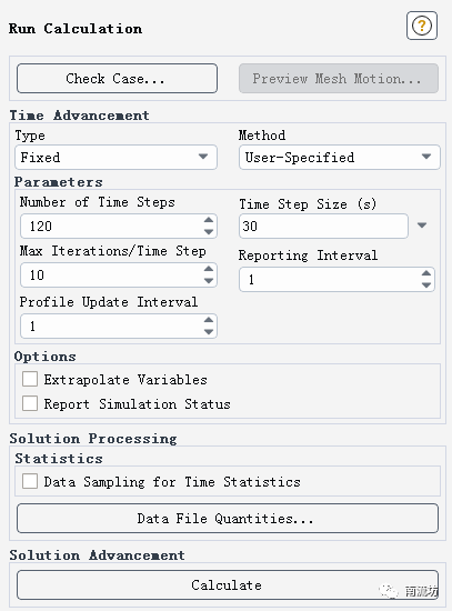 在Time Step Size填入30,Number of Iterations中输入120,单击Calculate开始计算。