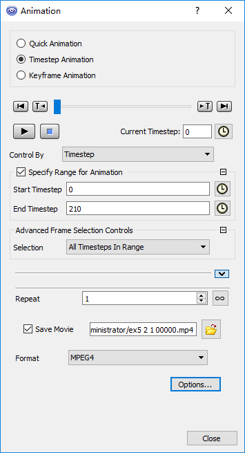 激活选项Specify Range for Animation,并设置起始时间步与终止时间步