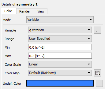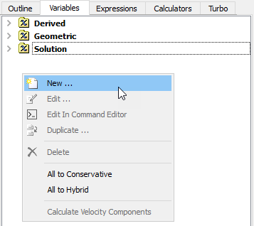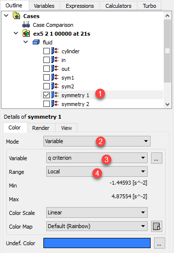 在类似于本案例的圆柱绕流问题中,常用Q准则来显示涡的强度。CFD-Post其实已经包含了Q变量,不过这里为了演示自定义变量的处理方式,我们手动定义个Q变量。