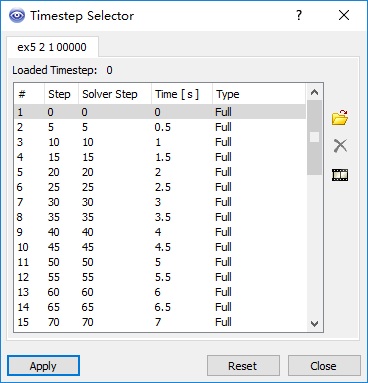 选择菜单Tools → Timesteps Selector,弹出时间步选择对话框,如下图所示