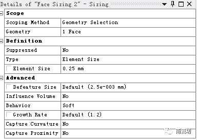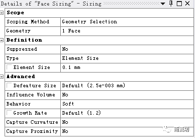 (4)设置计算不同边界位置的网格数量。在Mesh中Insert→Sizing,选择Inlet边界,Element Size输入0.1。