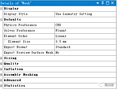 (1)双击A3栏Mesh项,进入Meshing界面,在该界面下进行模型的网格划分。