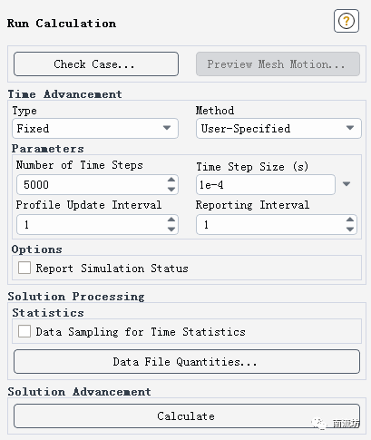 在Time Step Size填入1.0e-4,Number of Iterations中输入5000,单击Calculate开始计算。