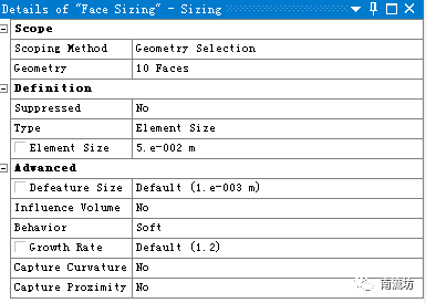 (4)选择水槽中的结构物,进行局部面网格加密,Element Size输入0.05。