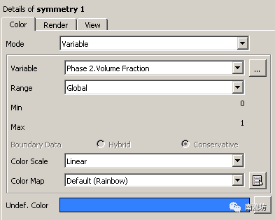 (2)双击Symmetry1,设置Mode为Variable,Variable选择Phase 2.Volume Fraction,单击Apply按钮确认。