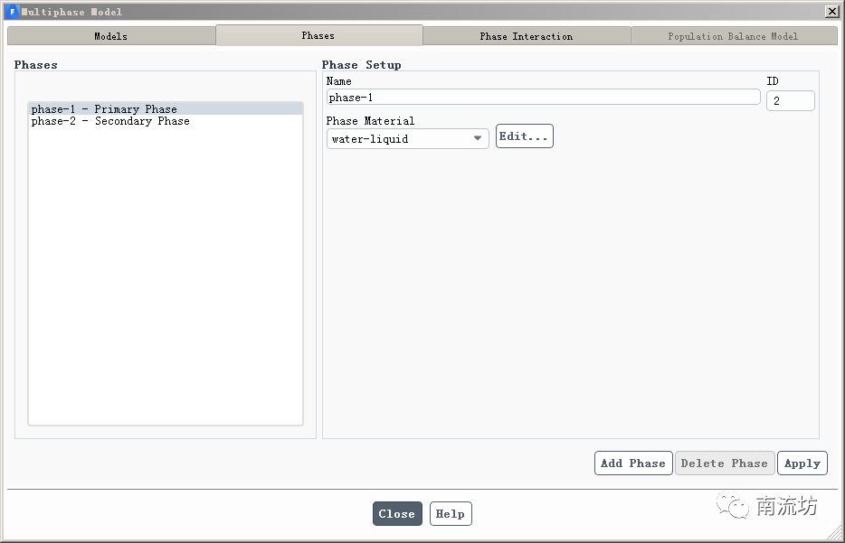 (3)在Phases选项卡中,Phase-1选择water-liquid,Phase-2选择oil。