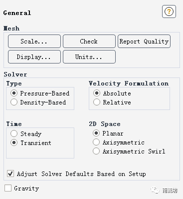 (1)单击命令结构树中General按钮,弹出General(总体模型设定)面板。在SolverTime中选择Transient。