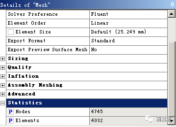 (5)单击鼠标左键选择Number of Divisions前的方框,显示P字样。同样,选择Mesh中Statistics里的Nodes和Elements,选择三个计算参数。