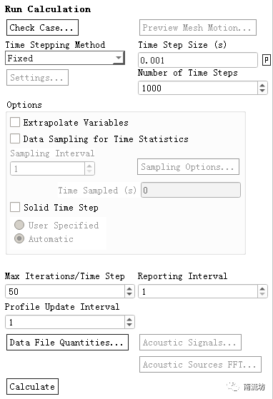 在Time Step Size中输入0.001,在Number of Time Steps中输入1000,单击Calculate开始计算。
