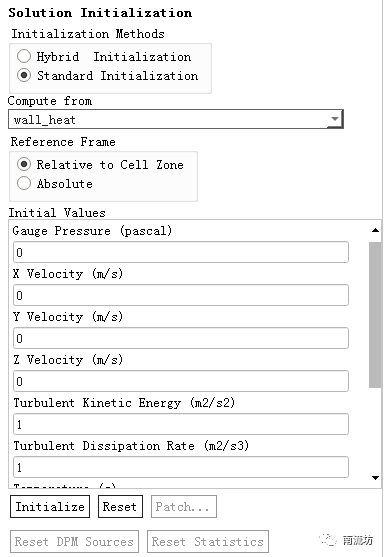 Initialization Methods中选择Standard Initialization,Compute from选择wall_heat,单击Initialize按钮进行初始化。