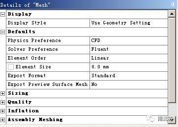 (4)网格参数设置,在Element Size中输入8mm,在Quality中,Smoothing选择High。