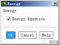 (2)在模型设定面板Models中双击Energy按钮,弹出Energy(能量模型)对话框,勾选Energy Equation,单击OK按钮确认并关闭对话框。