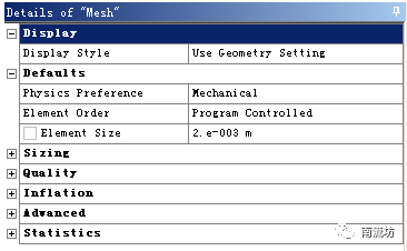 (1)双击A3栏Mesh项,进入Meshing界面,在该界面下进行模型的网格划分。