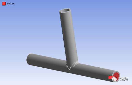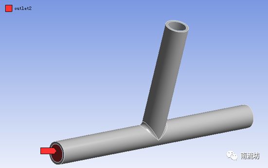 (2)右键选择流体域的入口与出口,在弹出的快捷菜单中选择Create Named Selection,弹出Selection Name对话框,输入名称inlet,outlet1和outlet2,单击OK按钮确认。