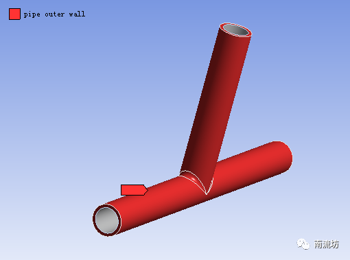 (3)右键选择管道固体的内表面口外表面,在弹出的快捷菜单中选择Create Named Selection,弹出Selection Name对话框,输入名称pipe inner wall和pipe outer wall,单击OK按钮确认。