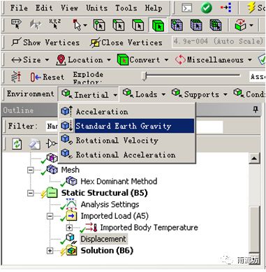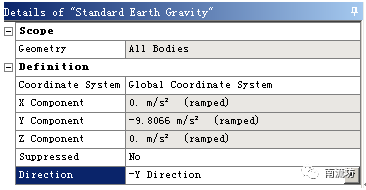 (7)在工具栏单击Inertial->Standard Earth Gravity,Direction选择-Y。