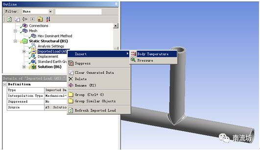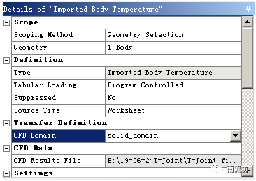 (9)右键单击模型树中Imported Load选项Insert->Body Temperature,在CFD Domain中选择solid_domain。
