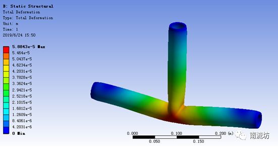 (12)计算完成后,单击Solution中的Total Displacement便可得到变形的计算结果图。