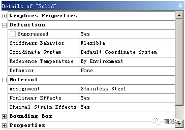 (3)单击选择固体域,在Material中,Assignment选择Stainless Steel。