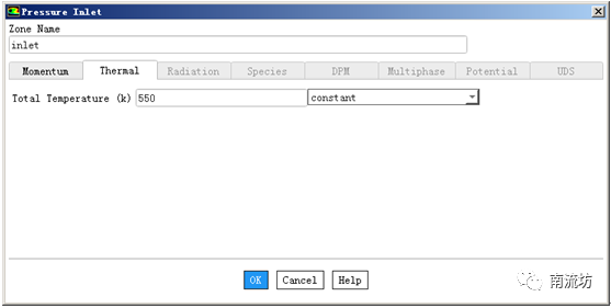 在Thermal选项卡中,Total Temperature输入550,单击OK按钮确认退出。