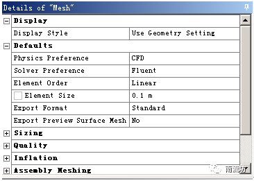 (1)双击A3栏Mesh项,进入Meshing界面,在该界面下进行模型的网格划分。