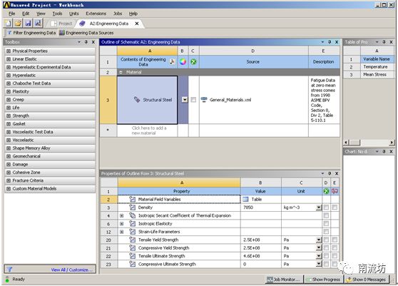 (1)双击A2栏Engineering Data项,进入A2:Engineering Data界面,在该界面下进行材料属性设置。