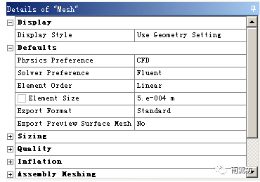 (1)双击B3栏Mesh项,进入Meshing界面,在该界面下进行模型的网格划分。
