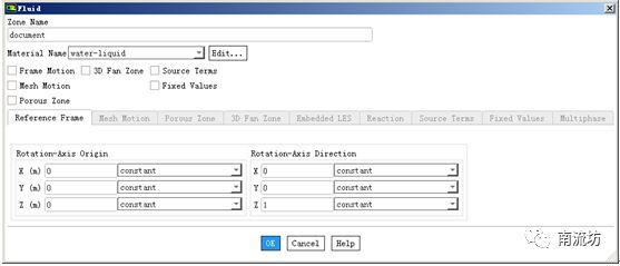 (2)单击主菜单中Setting Up Physics→Zones→Cell Zone Conditions面板。设置计算域材料为水。