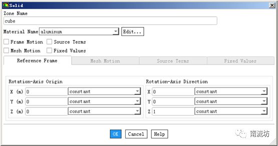 (1)单击主菜单中Setting Up Physics→Zones→Cell Zone Conditions面板。设置内部立方体材料为铝。