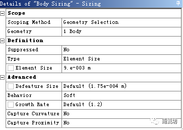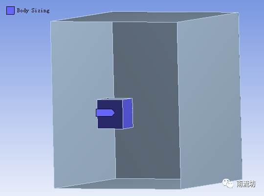(4)右键单击模型树中Mesh选项,依次选择Mesh→Insert→Sizing。boundary选择内部立方体壁面,Element Size填入0.009。