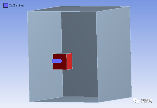 (3)右键单击模型树中Mesh选项,依次选择Mesh→Insert→Inflation。boundary选择内部立方体壁面。