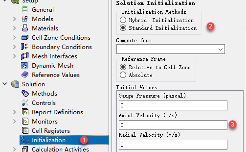 注意:Starndard Initialization初始化是利用用户设置的参数值,至于是用compute from下拉框中的哪一个辅助设置的,对于初始化是没有任何关系的。常用的compute from选择为all-zones或入口边界。