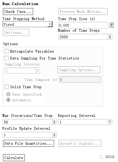 (1)单击主菜单中Solve→Run Calculation按钮,弹出Run Calculation(运行计算)面板。
