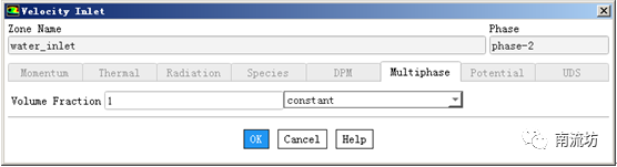 Phase选择Phase-2,在Multiphase选项卡中Volume Fraction填入1,单击OK按钮确认退出。
