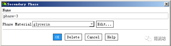 在Phase-2对话框中,Phase Material选择water-liquid,在Phase-3对话框中,Phase Material选择glycerin,单击OK按钮确认并关闭对话框。