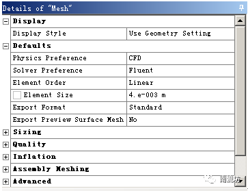 (1)双击A3栏Mesh项,进入Meshing界面,在该界面下进行模型的网格划分。