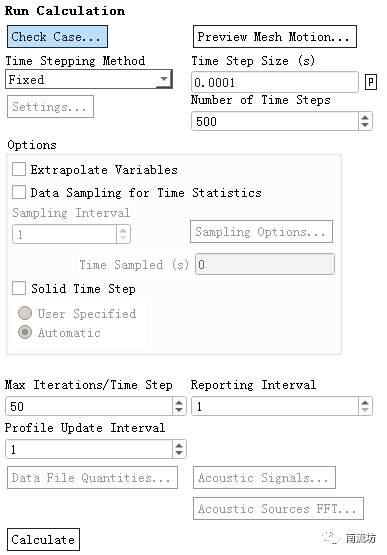 (1)单击主菜单中Solve→Run Calculation按钮,弹出Run Calculation(运行计算)面板。