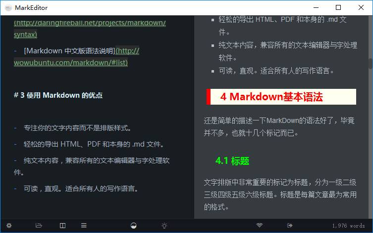 MarkEditor,我用了很久的一款Markdown编辑器,界面清爽干净,很漂亮。不过现在收费了,免费的其实也可以用,只不过没有了部分导出功能。