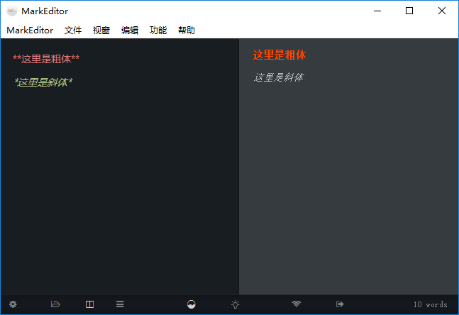 Markdown 的粗体和斜体也非常简单,用两个 * 包含一段文本就是粗体的语法,用一个 * 包含一段文本就是斜体的语法。