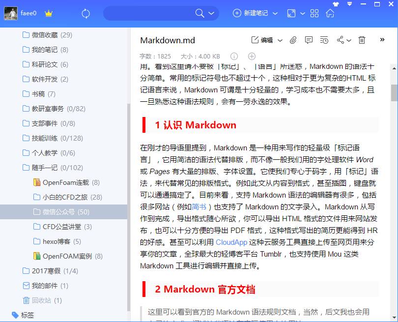 我这几年用得比较多的文档管理软件。其支持在里头写MarkDown笔记。不过我很少在这里头直接写笔记,通常都是将其作为文件管理器,支持在线同步。不过现在好像收钱了。