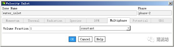 Phase选择Phase-2,在Multiphase选项卡中Volume Fraction填入1,单击OK按钮确认退出。