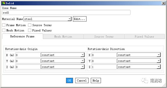 (1)单击主菜单中Setting Up Physics→Zones→Cell Zone Conditions面板。设置铁棒材料为铁,水罐内材料为水。