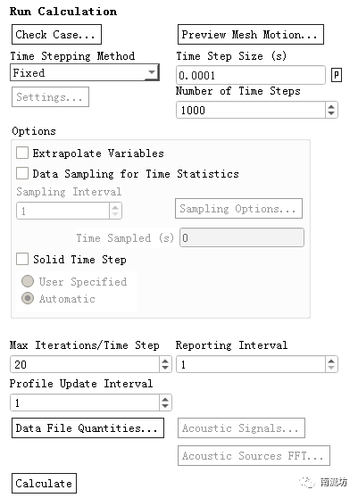 在Time Step Size中输入0.0001,在Number of Time Steps中输入1000,单击Calculate开始计算。