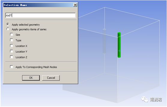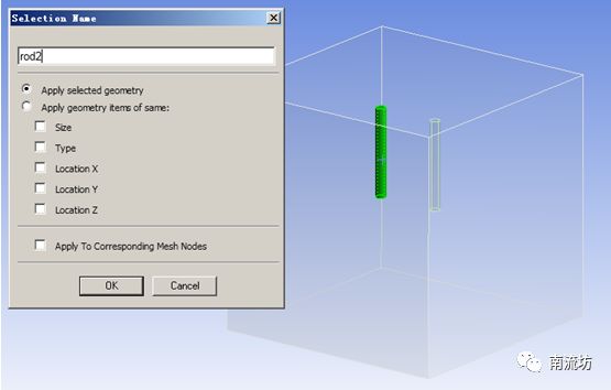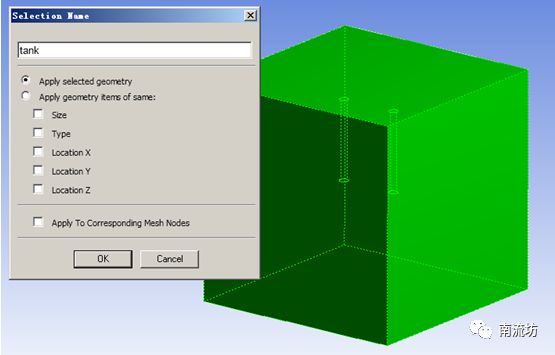 (2)右键选择水罐,在弹出的快捷菜单中选择Create Named Selection,弹出Selection Name对话框,输入名称tube,单击OK按钮确认。