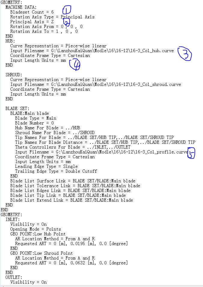 ⑤ 位置是叶片型线点坐标文件的位置