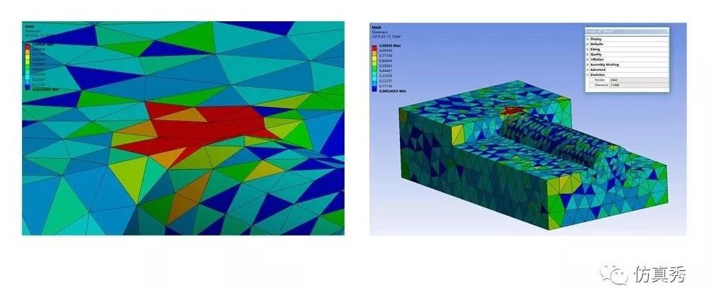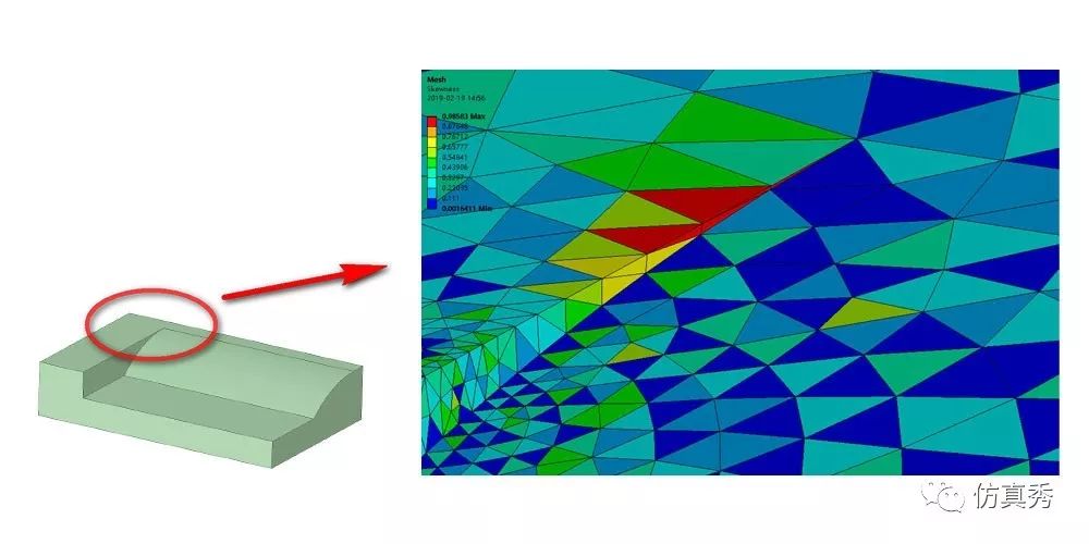 如果流体区域的几何形状上存在尖角,那么无论采用何种网格都是无法壁面大扭曲度结果的,而且,任何一个大扭曲度的网格都会引发整个区域的非物理解,因此必须要简化流体尖角区域的几何。
