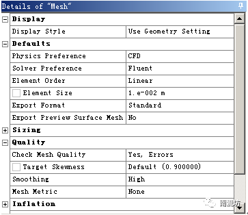 (1)双击A3栏Mesh项,进入Meshing界面,在该界面下进行模型的网格划分。